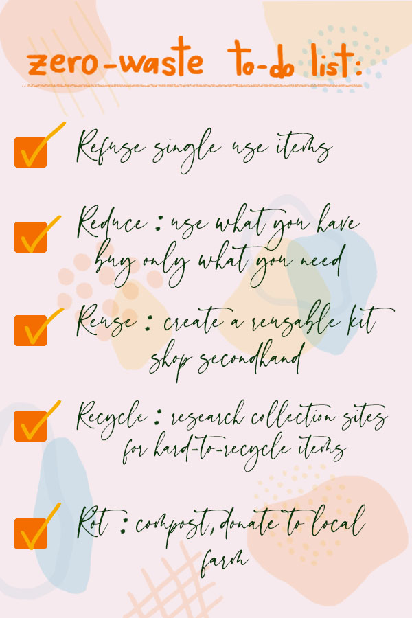 Maja had also gone on to say that although she has chosen the zero waste lifestyle, she is not about forcing everyone to make this drastic change, but asking people to put in the effort for small changes. “If we all put those small changes, eating one meat meal a week instead of 5 for example, we will have a massive change”. Maja is also in the middle of writing an ebook about zero waste traveling that would involve illustrations with guidance and advice based on her experience. She saw this as an opportunity for her to use her skills and to educate people on the problem. Below is an illustration she made that refers to the 5 R’s of a zero waste lifestyle: