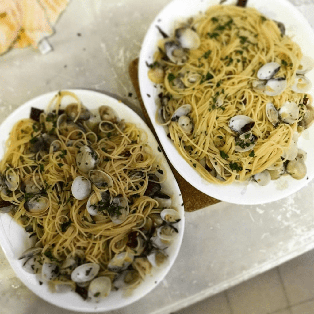 I can’t express how much this pasta means to me. I don’t think it was one of the first I’ve ever tried but it definitely came to be one of my all time favourites! Contrary to what a lot of recipes will tell you I.e. cook everything together…this simple extra step of removing the clams first and them putting them back in again at the end makes all the difference. It gives your pasta more room to absorb the beautiful clam juice and white wine whilst your clams sit tight and not overcook. Served with a bit of grated bottarga on the top and some lemon zest…yum!